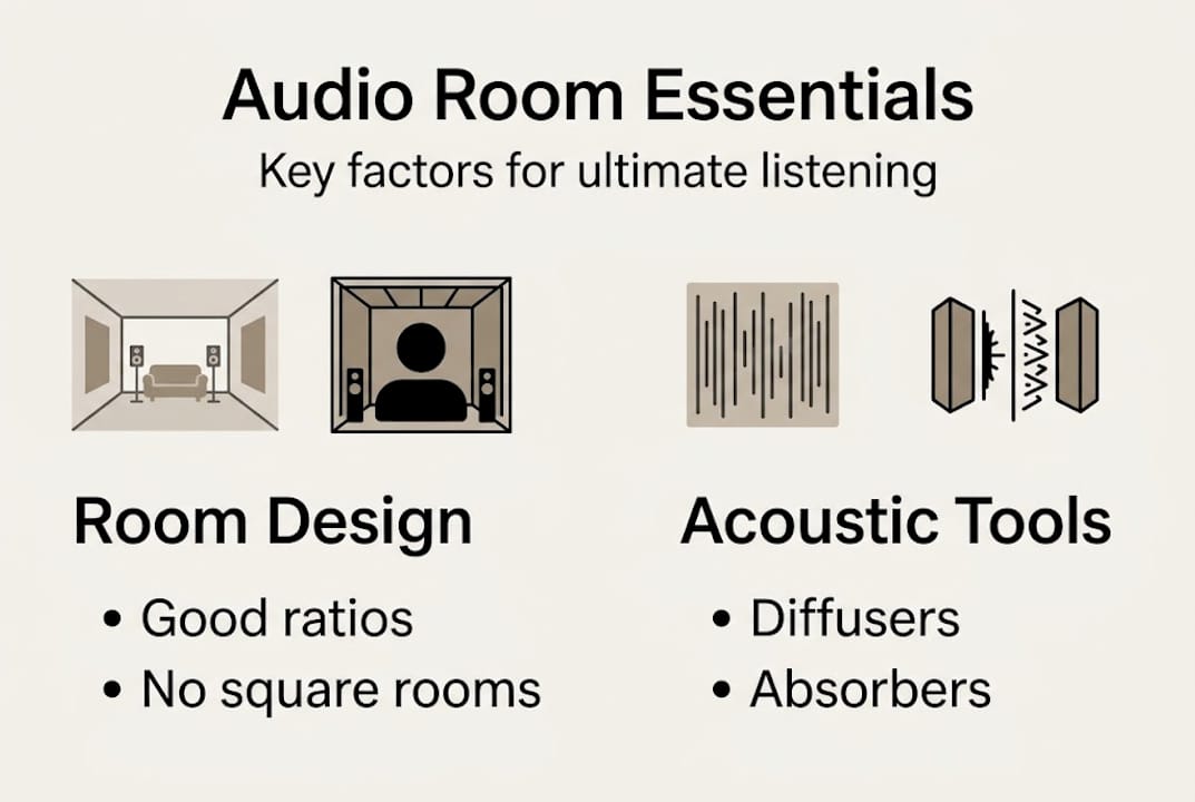 The physical room is your most important component. Full stop. You can swap amplifiers and DACs endlessly, but if the room is working against you, no piece of gear will fix it. Understanding this early saves enormous frustration and money. The hi-fidelity principles that define true high-end listening always start with the environment, not the electronics.