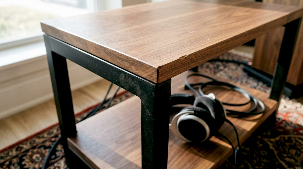 Pro Tip: Before choosing a rack, think about your room as much as your gear. A hard-floored room with parallel walls already has a bright, reflective character. In that environment, a solid walnut rack does double duty, adding warmth to the system's perceived tone and anchoring the visual space.